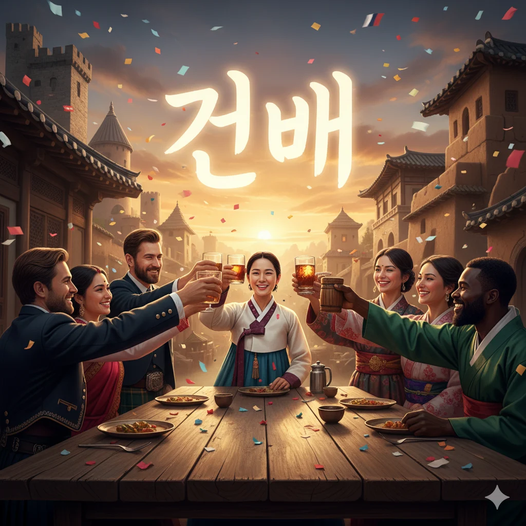 When I first joined a dinner in Seoul, I noticed how everyone paused before sipping their drink. Then, someone raised their glass high and said “건배!” (Geonbae!) — their faces glowing with laughter. That one word wasn’t just a toast; it was a connection, a celebration of togetherness.
