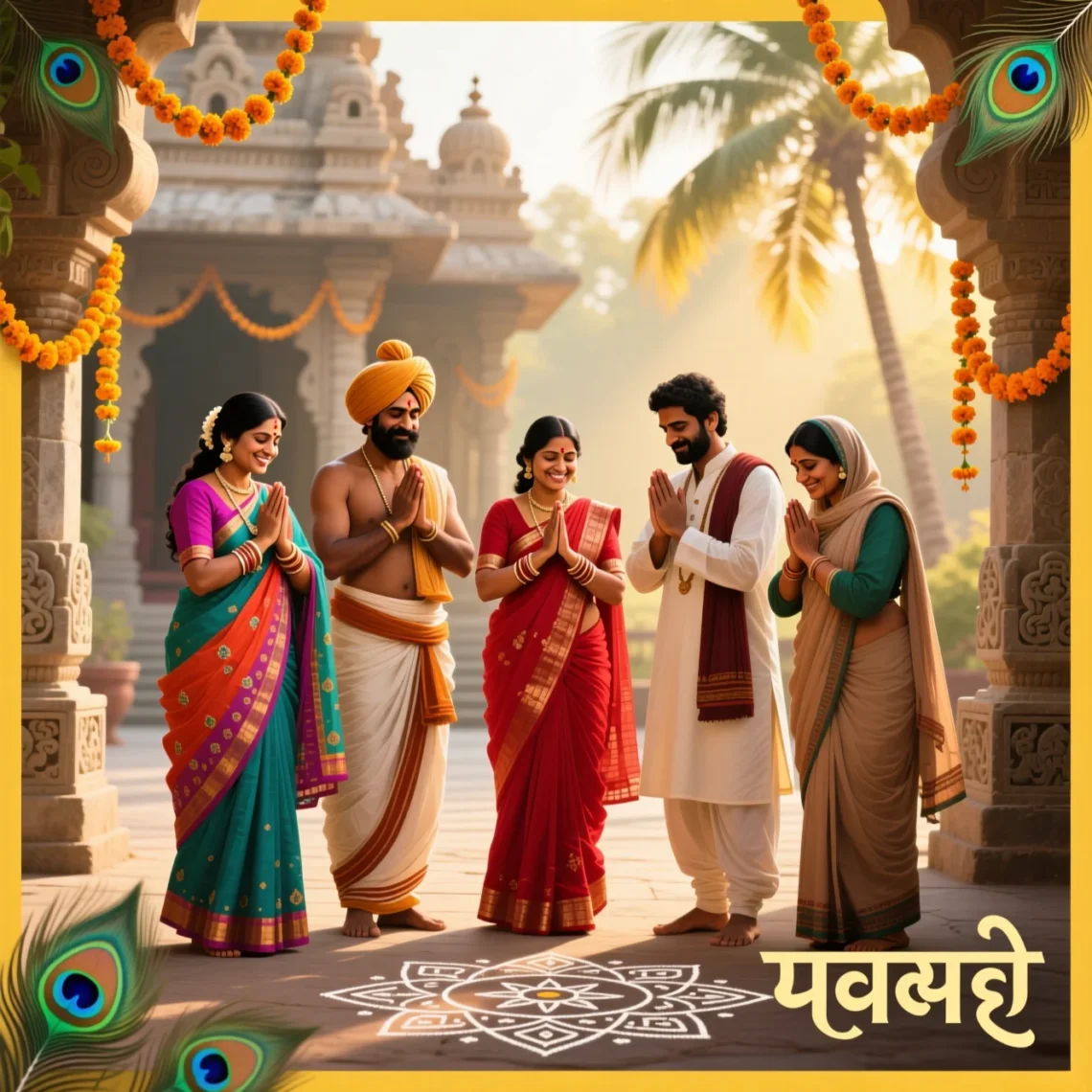 These greetings show Western India’s joyful balance between spirituality and everyday life.